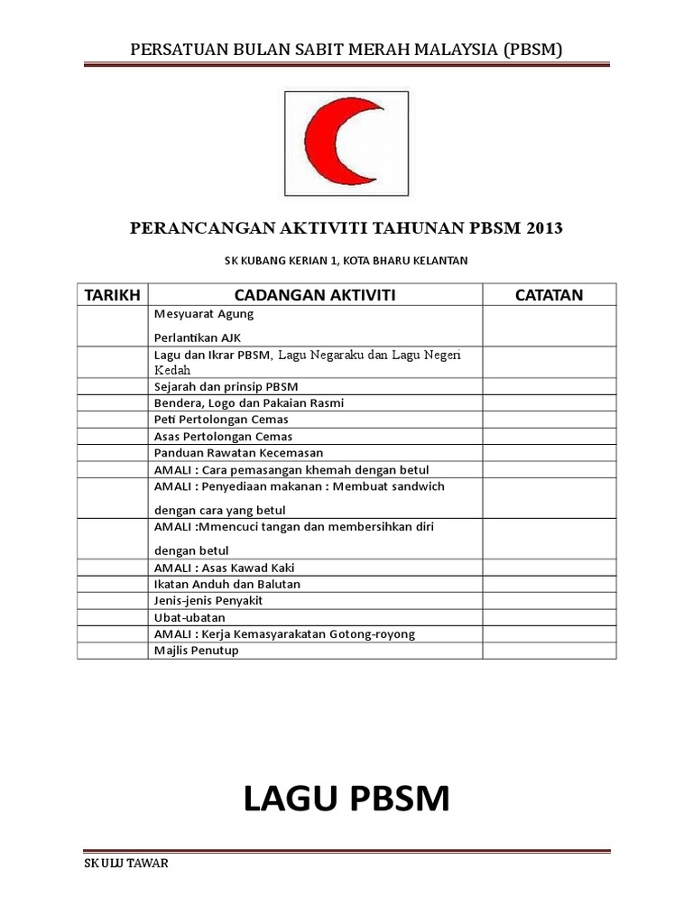A CPR b EAR c CPU d ARE 7 Langkah pertama sebelum. Persatuan Bulan Sabit Merah Malaysia mempunyai beberapa sukatan pelajaran yang perlu. PERANCANGAN AKTIVITI TAHUNAN PERSATUAN BULAN SABIT.
